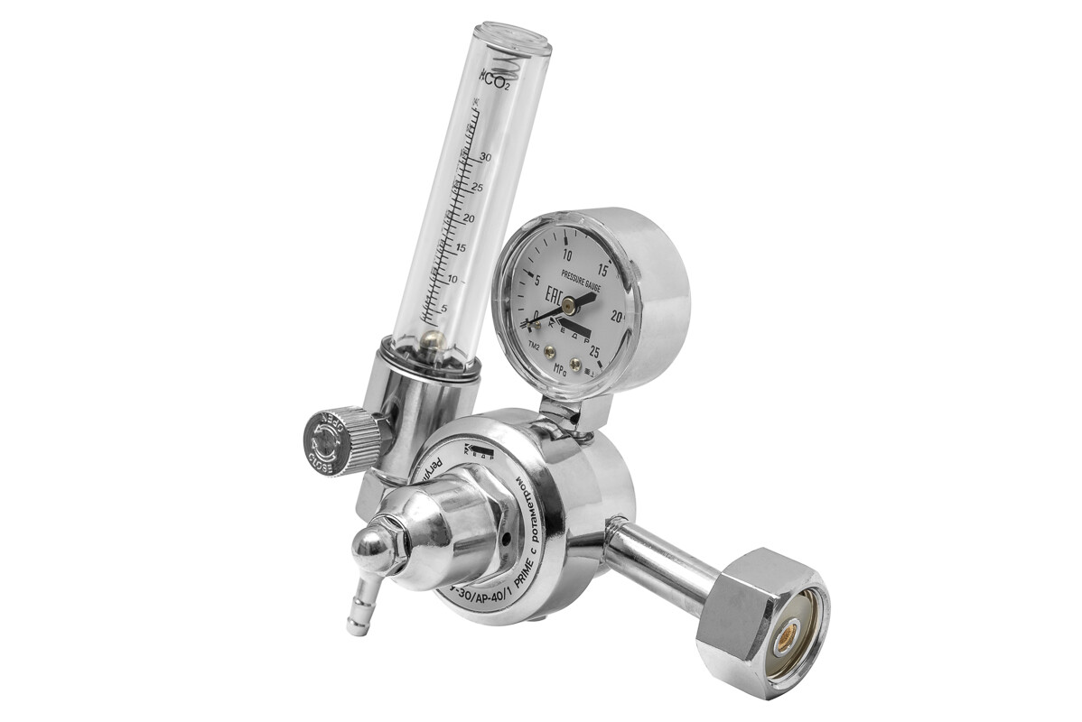 Регулятор расхода КЕДР У-30/АР-40/1 PRIME с ротаметром предназначен для понижения давления защитного газа, подаваемого из магистрали или баллона, и поддержания постоянного заданного расхода при питании постов сварочного оборудования для MIG/MAG и TIG-сварки.