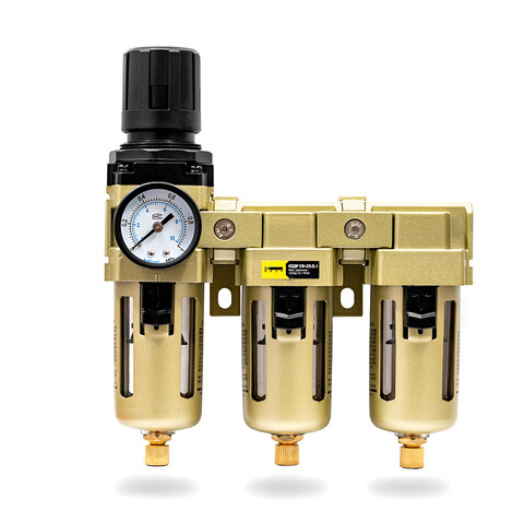 Блок подготовки воздуха используется совместно с компрессорным оборудованием и подключаемыми к нему установками плазменной резки и станками ЧПУ. Блок подготовки воздуха объединяет в себе воздушный фильтр-осушитель и редуктор с манометром, которые выполняют функцию очистки сжатого воздуха от механических частиц, воды и минерального масла.