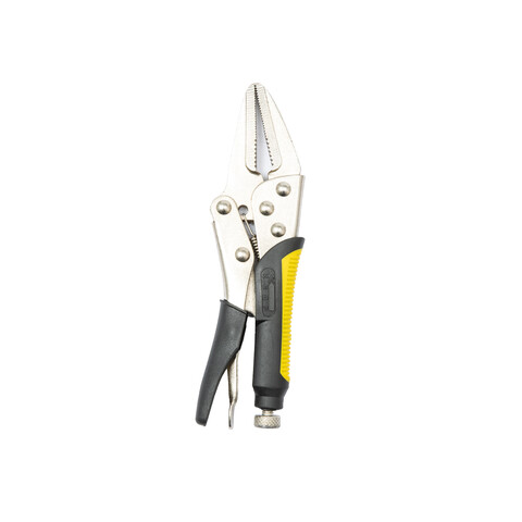 Зажим ручной КЕДР 6,5J PRO предназначен для быстрой фиксации и удержания заготовок при сборке деталей на прихватки и выполнении механических работ. Применяется в слесарной обработке. Ручной зажим сделан из стали и имеет хромированное покрытие. Надежная фиксация деталей обеспечивается благодаря прочной конструкции системы фиксации и губкам с насечкой, которые выполнены из качественной углеродистой стали. Рабочие поверхности губок закалены и имеют твердость (HRC) 43°±2. Тип зажима J - имеет продолговатые губки и применяется для зажимов в труднодоступных местах, когда место фиксации расположено отдаленно от края. Наличие фиксатора позволяет регулировать расстояние между губками. С помощью рычага зажим легко разжимается. На рукоятках имеются специальные полимерные накладки, которые препятствуют скольжению руки и улучшаю хват.
