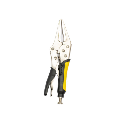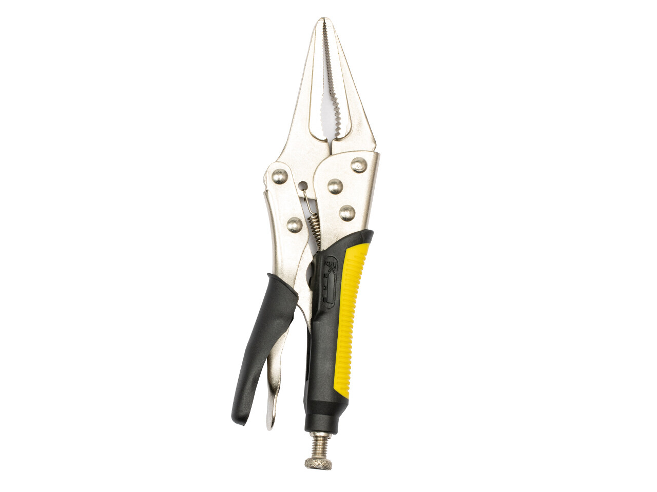 Зажим ручной КЕДР 9J PRO предназначен для быстрой фиксации и удержания заготовок при сборке деталей на прихватки и выполнении механических работ. Применяется в слесарной обработке. Ручной зажим сделан из стали и имеет хромированное покрытие. Надежная фиксация деталей обеспечивается благодаря прочной конструкции системы фиксации и губкам с насечкой, которые выполнены из качественной углеродистой стали. Рабочие поверхности губок закалены и имеют твердость (HRC) 43°±2. Тип зажима J - имеет продолговатые губки и применяется для зажимов в труднодоступных местах, когда место фиксации расположено отдаленно от края. Наличие фиксатора позволяет регулировать расстояние между губками. С помощью рычага зажим легко разжимается. На рукоятках имеются специальные полимерные накладки, которые препятствуют скольжению руки и улучшаю хват.