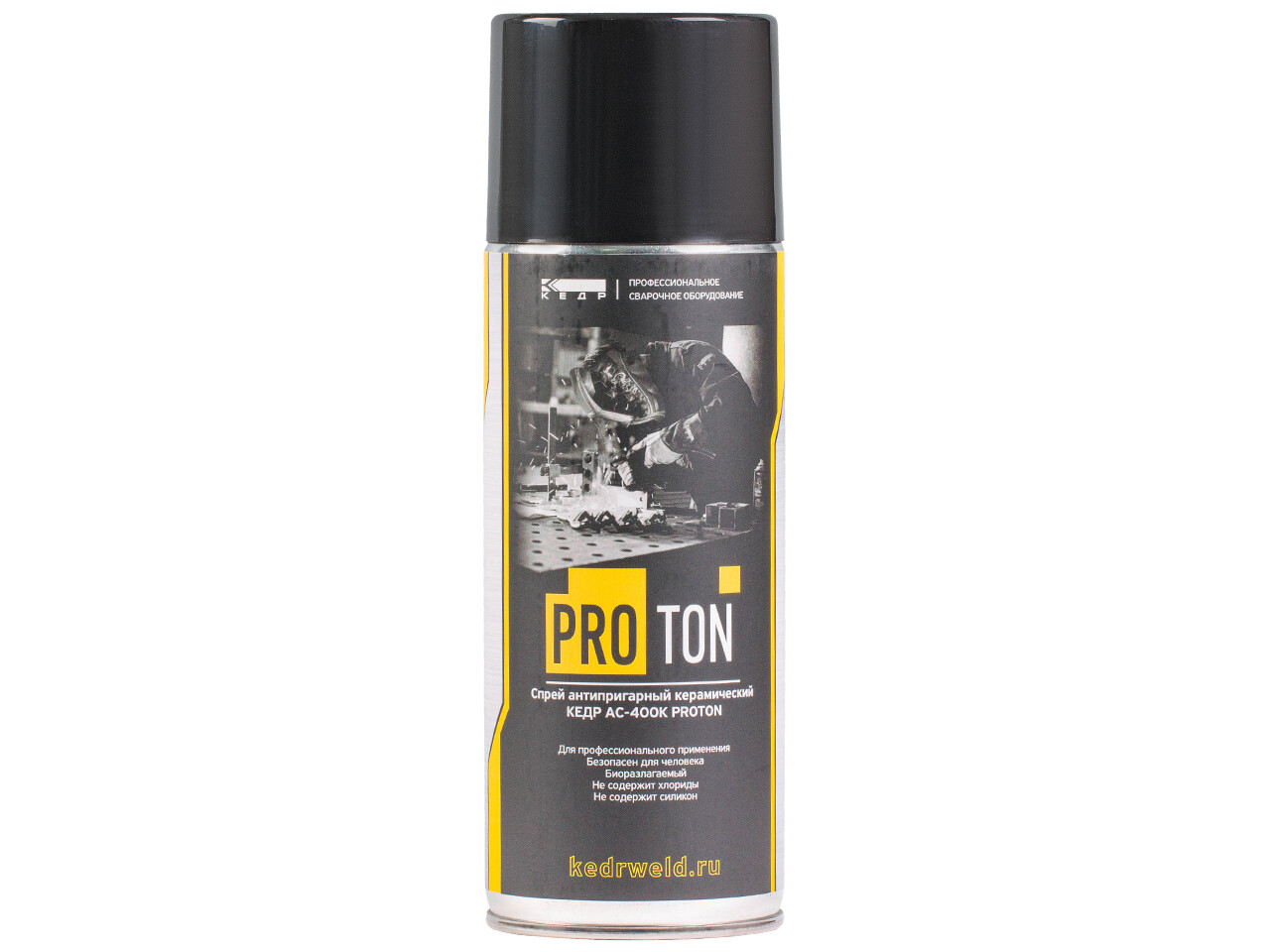 Спрей против брызг металла при сварке КЕДР АС-400К PROTON на основе биоразлагаемых синтетических полимеров является профессиональным высокоэффективным средством защиты и продлевает срок службы сопла и контактного наконечника сварочной горелки, а также может применяться для защиты поверхности свариваемого изделия. Сокращает время обслуживания компонентов сварочного оборудования, время очистки изделия после сварки, снижает общую стоимость выполнения сварочных работ. Допускает последующую обработку изделия после сварки: хромирование, цинкование, покраска и т.д. Обладает высокой степенью защиты и образует теплостойкую керамическую пленку, которая препятствует налипанию брызг металла.