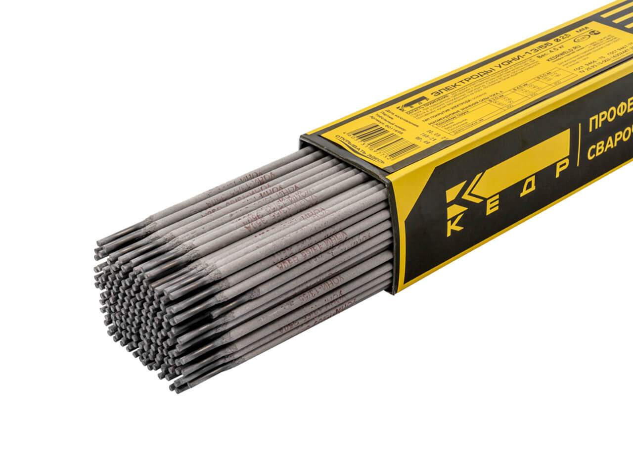 Электроды УОНИ 13/55 Ø 2,5 мм (КЕДР) пачка 4,5кг (цена указана за 1 кг.) - предназначены для сварки ответственных конструкций из углеродистых сталей, когда к металлу сварного шва предъявляются повышенные требования по пластичности и ударной вязкости. Сварка во всех пространственных положениях, кроме вертикального сверху вниз, постоянным током обратной полярности.