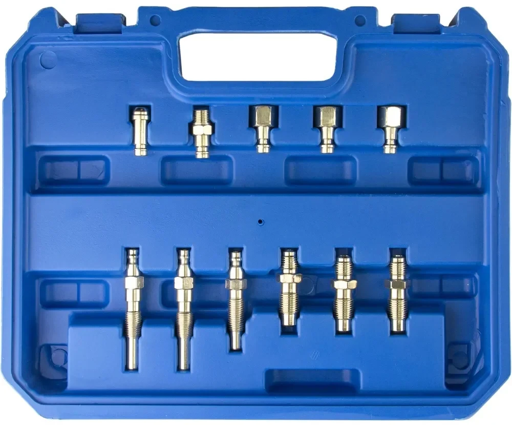 - Наличие адаптеров с различной резьбой позволяет использовать набор для многочисленного парка дизельных автомобилей.