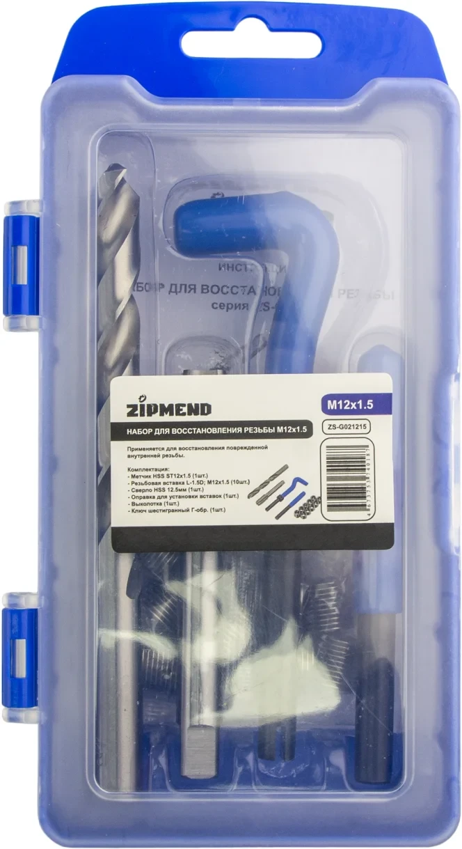 Набор для восстановления резьбы M12 х 1.5 мм., ZIPMEND, ZS-G021215.
