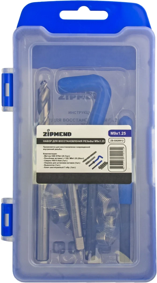 Набор для восстановления резьбы M9 х 1.25 мм., ZIPMEND, ZS-G020912.