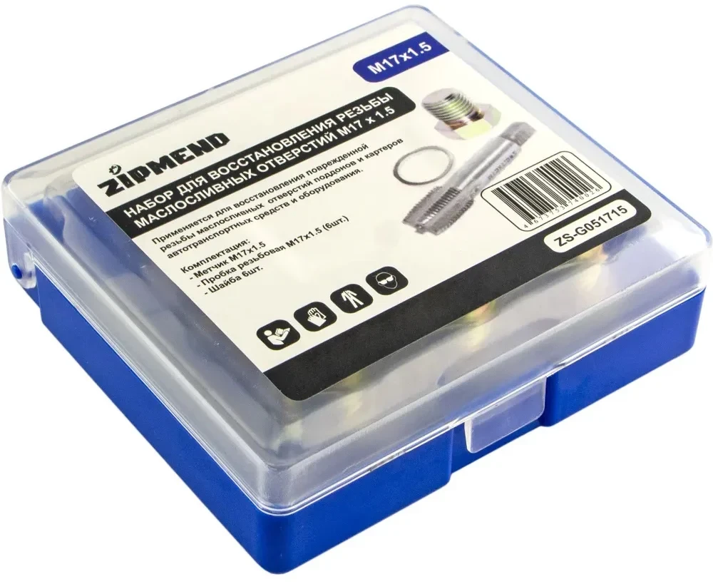 - Набор ZS-G051715 специально предназначен для восстановления резьбы M17 x 1,5 маслосливных отверстий картера, коробки передач и дифференциала автомобиля.