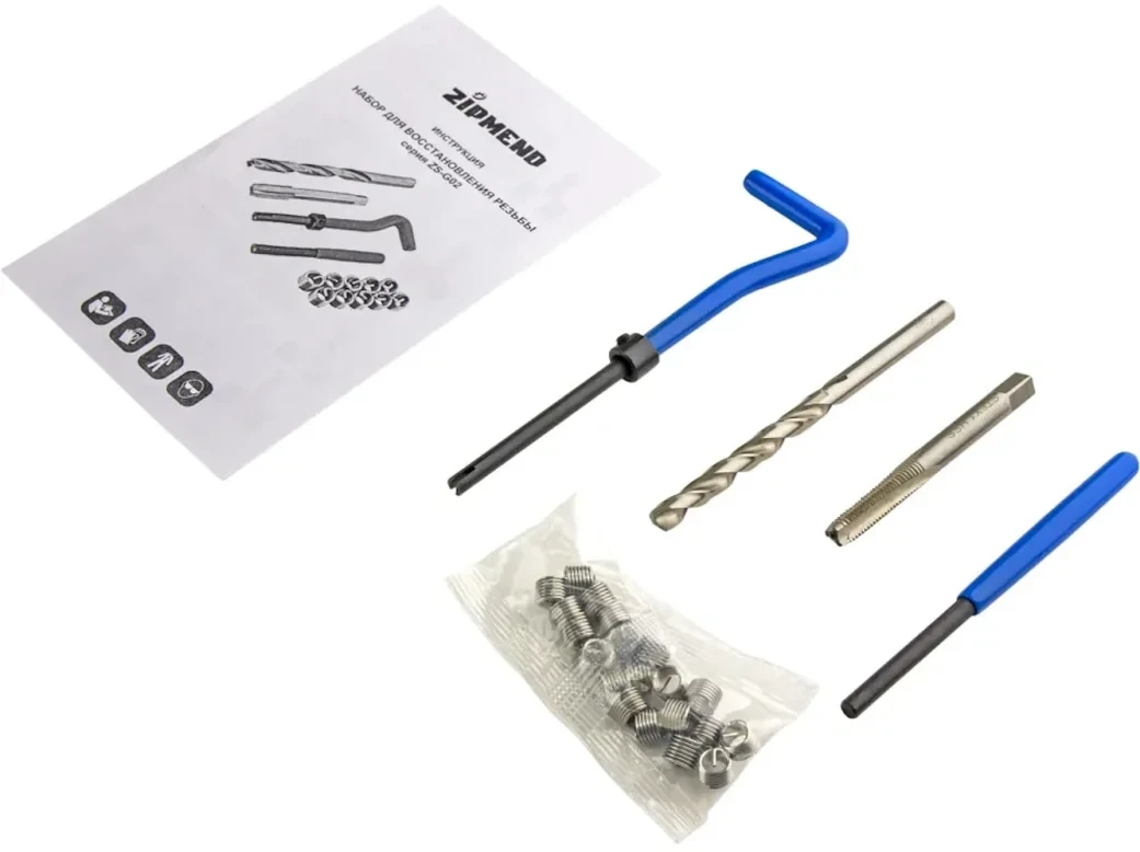 - Набор ZS-G020610 cпециально предназначен для восстановления повреждённой или изношенной внутренний резьбы М6х1,0 мм.
