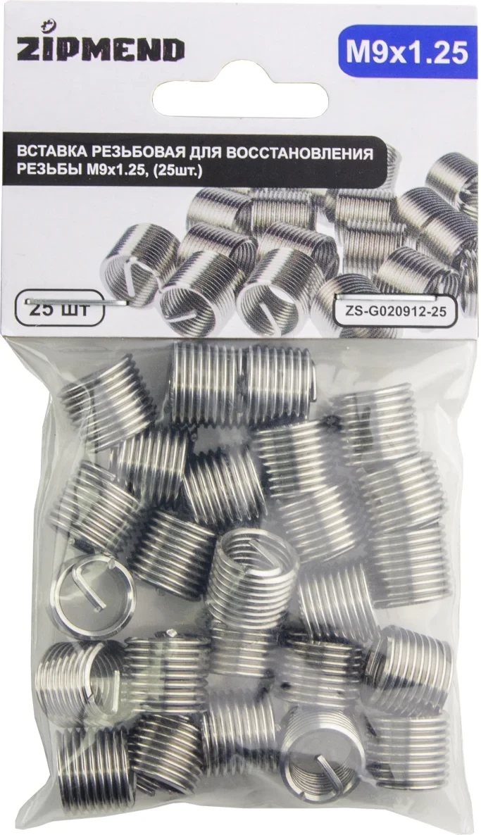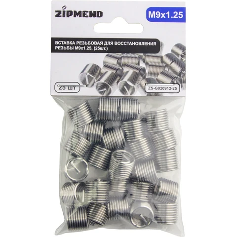 Вставка резьбовая для восстановления резьбы M9 х 1.25 мм., 25 штук, ZIPMEND, ZS-G020912-25.