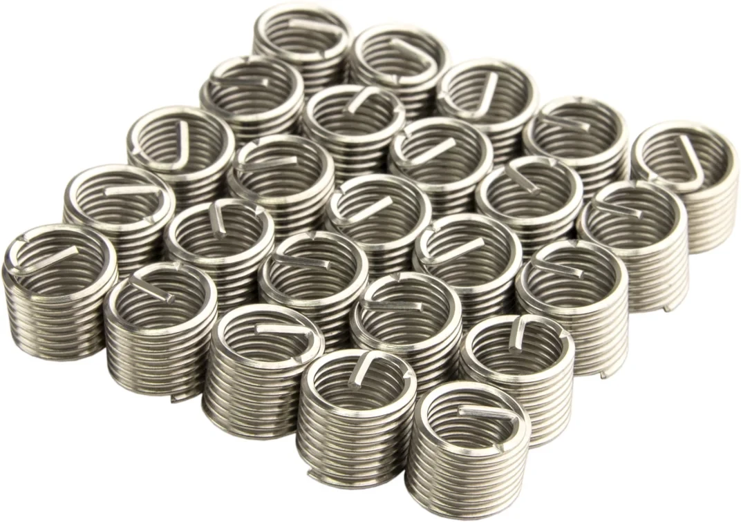 - Вставки имеют форму пружинки или спирали, что позволяет легко вкручивать их в поврежденную резьбу.