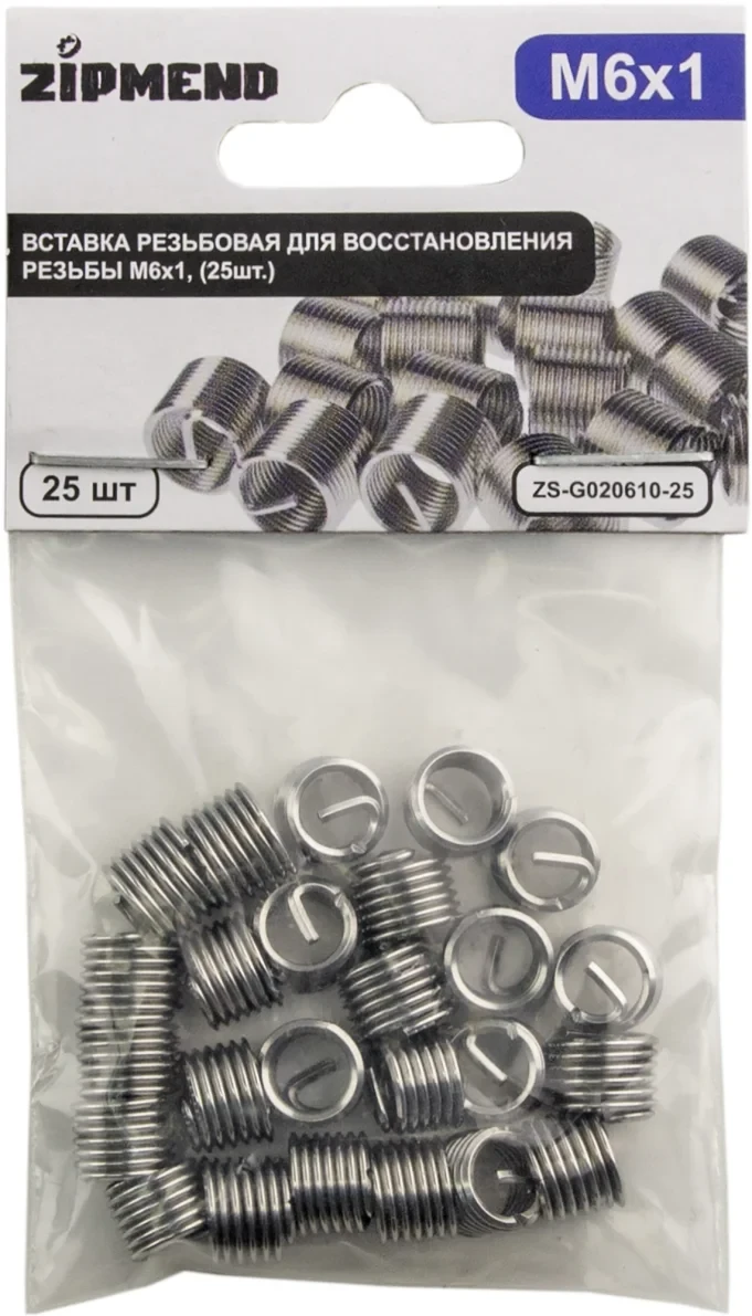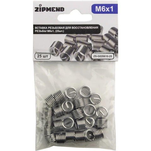 Вставка резьбовая для восстановления резьбы M6 х 1мм., 25штук, ZIPMEND, ZS-G020610-25.
