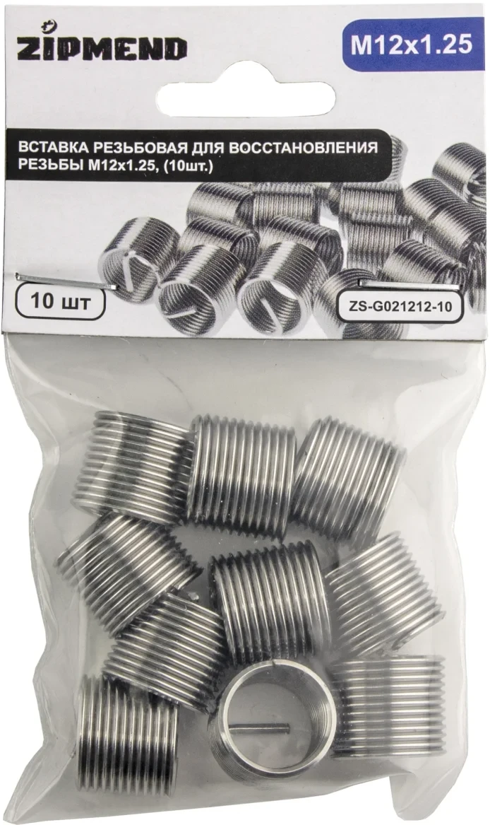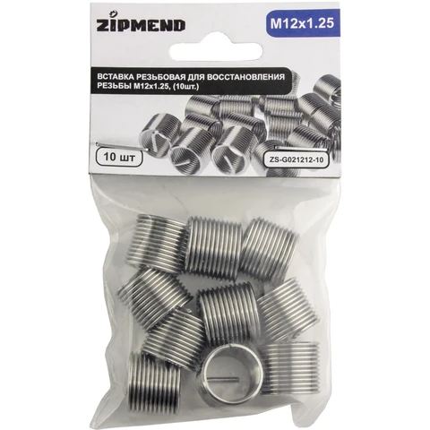 Вставка резьбовая для восстановления резьбы M12 х 1.25 мм., 10 штук, ZIPMEND, ZS-G021212-10.