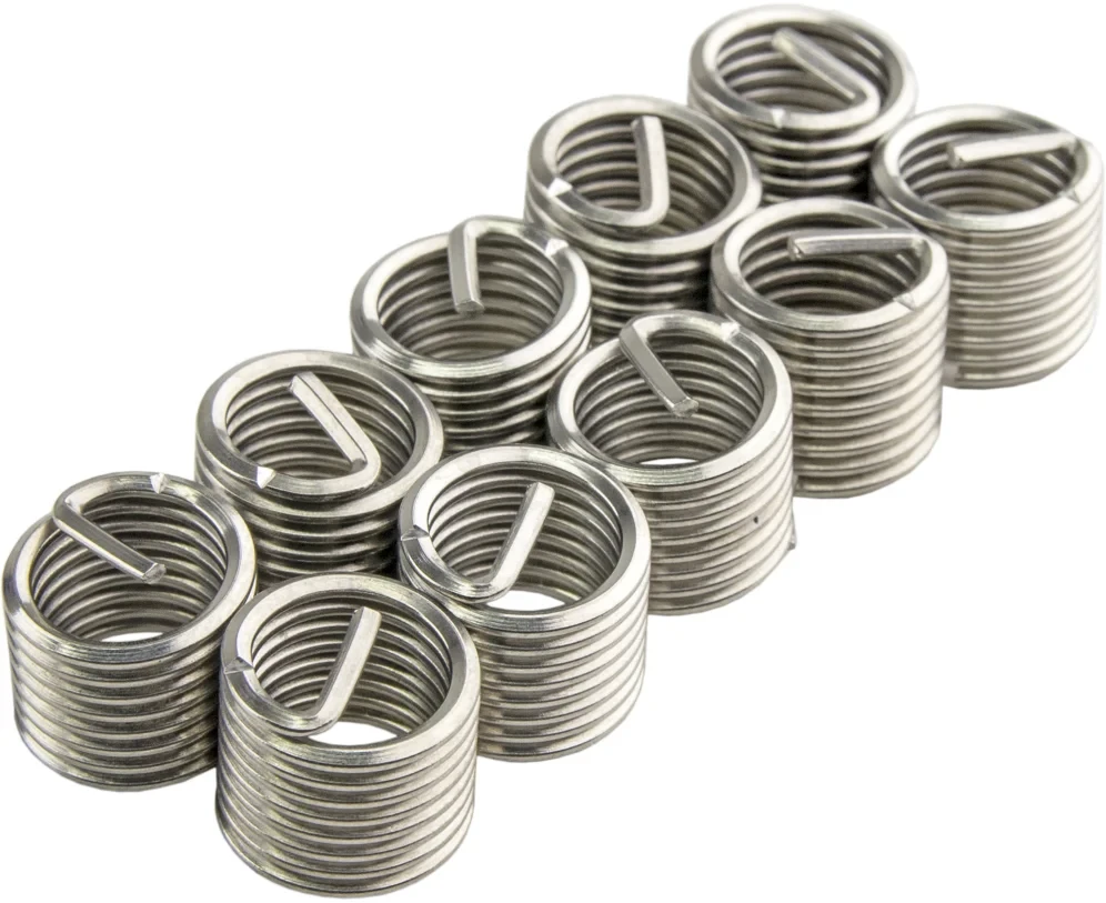 - Вставки имеют форму пружинки или спирали, что позволяет легко вкручивать их в поврежденную резьбу.