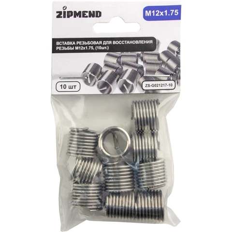 Вставка резьбовая для восстановления резьбы M12 х 1.75 мм., 10 штук, ZIPMEND, ZS-G021217-10.