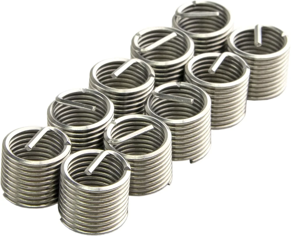 - Вставки имеют форму пружинки или спирали, что позволяет легко вкручивать их в поврежденную резьбу.
