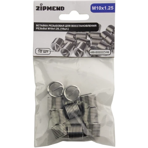 Вставка резьбовая для восстановления резьбы M10 х 1.25 мм., 10 штук, ZIPMEND, ZS-G021012-10.