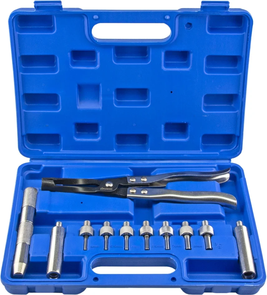- Комплект приспособлений ZS-A011007 применяется для обслуживания маслосъемных колпачков и направляющих клапанов ДВС.