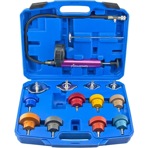 - Набор для проверки герметичности системы охлаждения, состоит из 14 предметов.