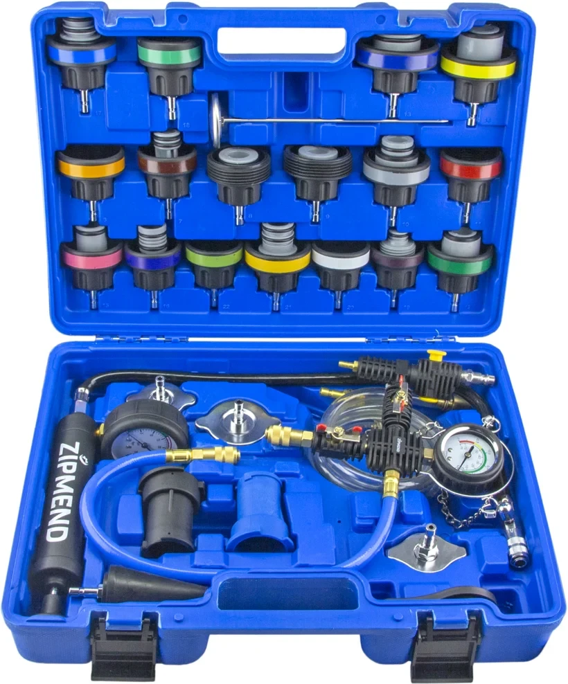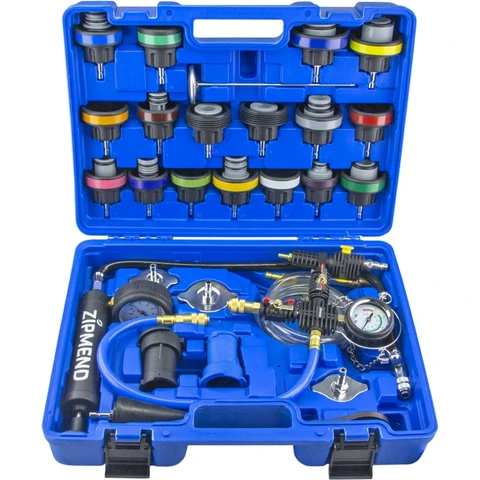 - Набор из 28 предметов для проверки герметичности системы охлаждения подходит большинству моделей автомобилей.