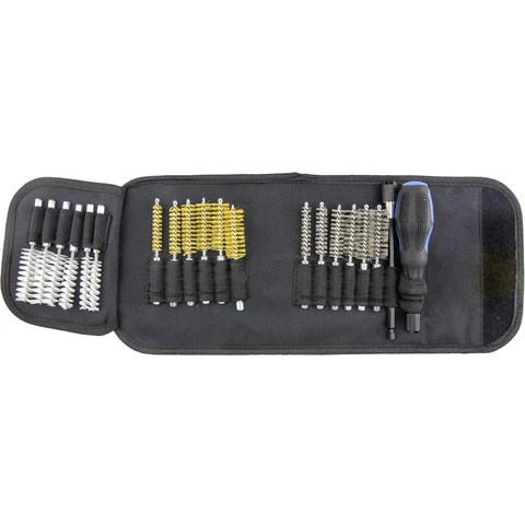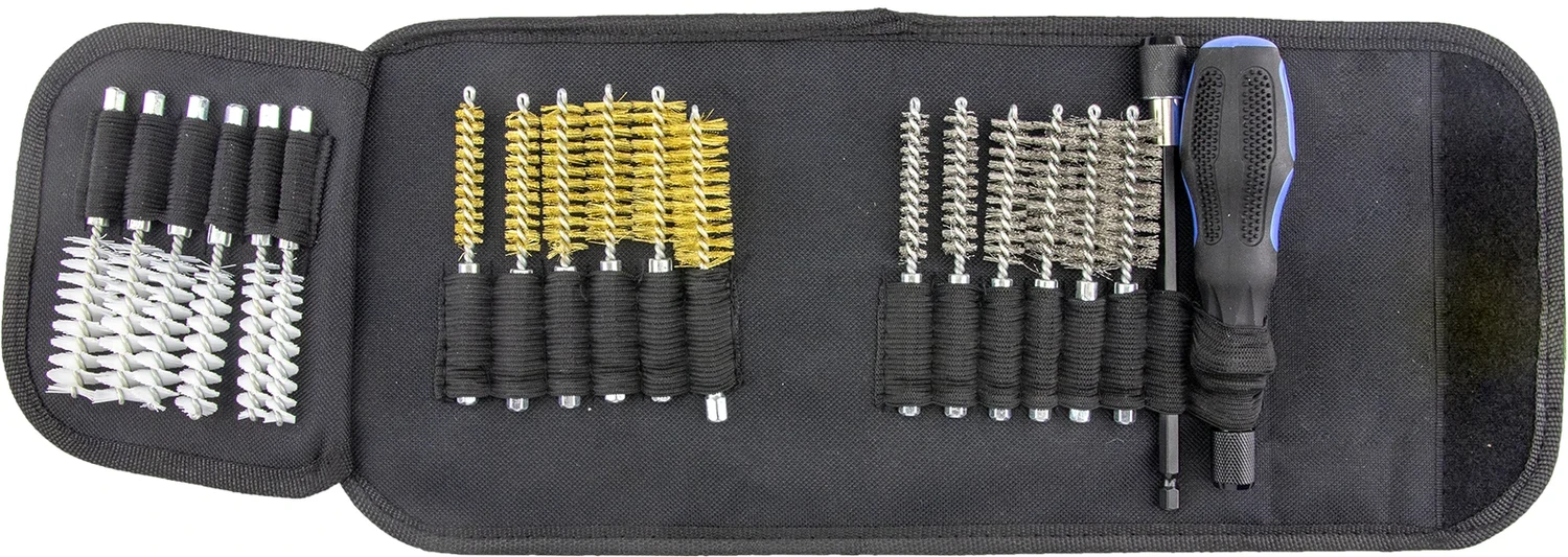 - Набор для чистки каналов из 18 щеток (нейлон, нержавейка, латунь), рукоятки и удлинителя.
