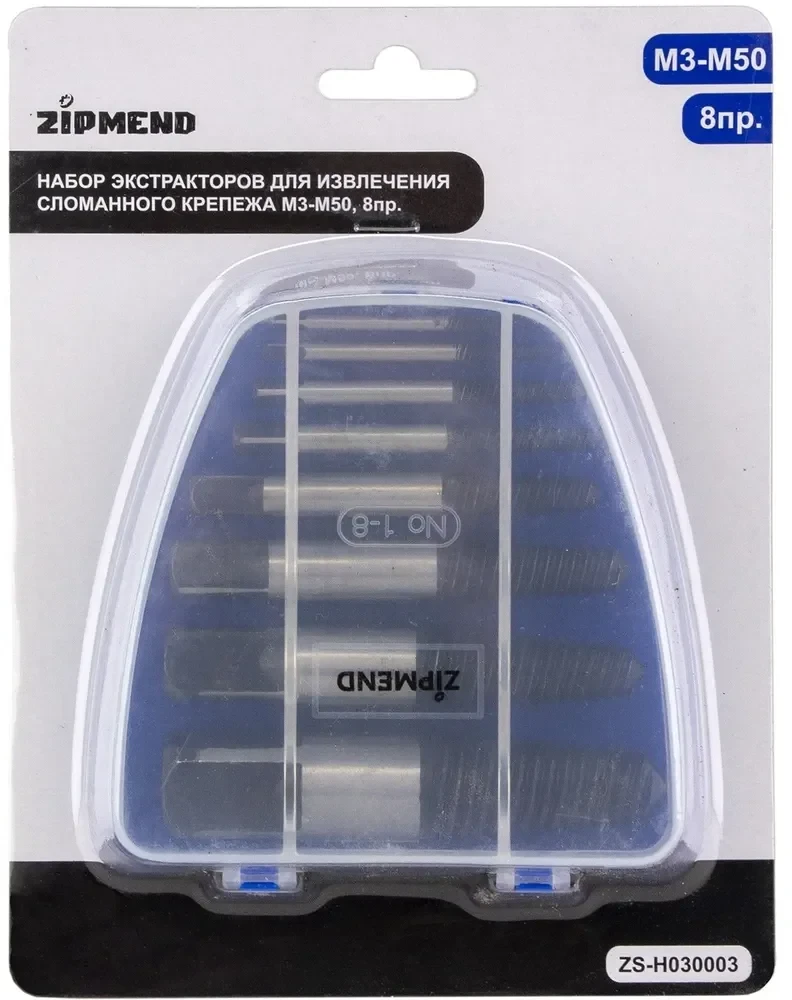 Набор экстракторов для извлечения сломанного крепежа М3-М50, 8пр., ZS-H030003