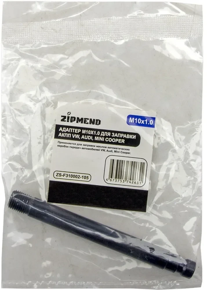 - Адаптер M10х1.0 ZS-F310002-105 применяется для быстрой замены жидкости ATF в автоматической трансмиссии в автомобилях VW, Audi, Mini Cooper.