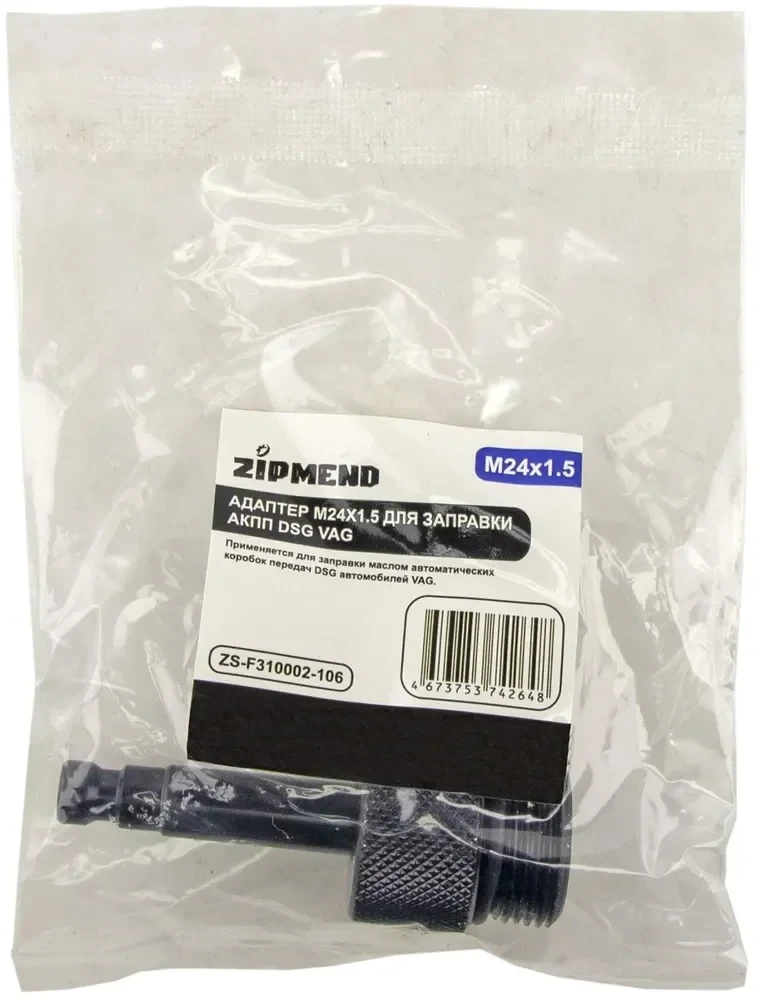 - Адаптер M24х1.5 ZS-F310002-106 применяется для быстрой заправки маслом в автоматической коробке передач DSG автомобилей VAG.