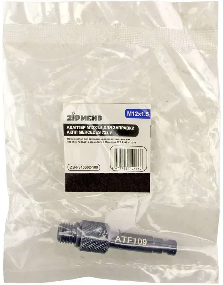 - Адаптер ATF-109 (М12x1,5) ZS-F310002-109 применяется для заправки маслом автоматических коробок передач Mercedes 722.9, Toyota Corolla Altis 2010.