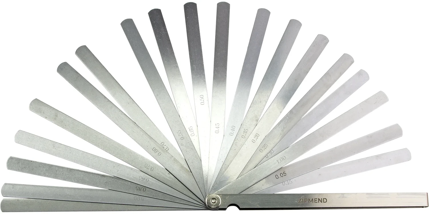 - Размеры щупов: 0.05, 0.10, 0.15, 0.20, 0.25, 0.30, 0.3, 0.40, 0.45, 0.50, 0.55, 0.60, 0.65, 0.70, 0.75, 0.80, 0.85, 0.90, 0.95, 1.00 мм.