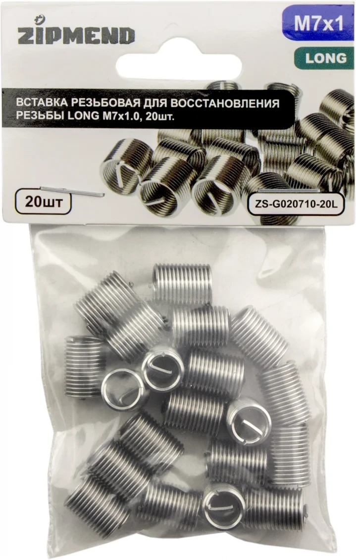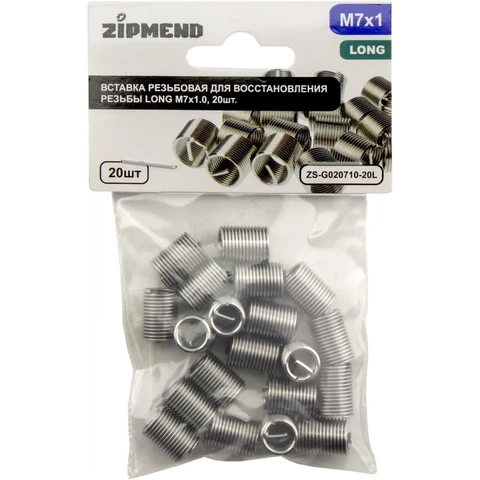 Вставка резьбовая для восстановления резьбы LONG M7 х 1.0, 20 штук, ZIPMEND, ZS-G020710-20L.