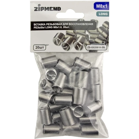 Вставка резьбовая для восстановления резьбы LONG M8 х 1.0, 20 штук, ZIPMEND, ZS-G020810-20L.