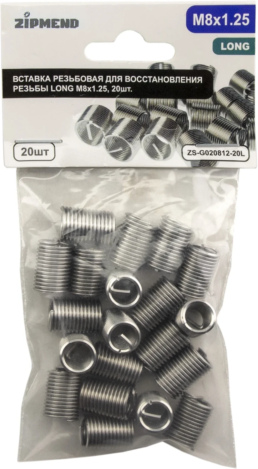 Вставка резьбовая для восстановления резьбы LONG M8 х 1.25, 20 штук, ZIPMEND, ZS-G020812-20L.
