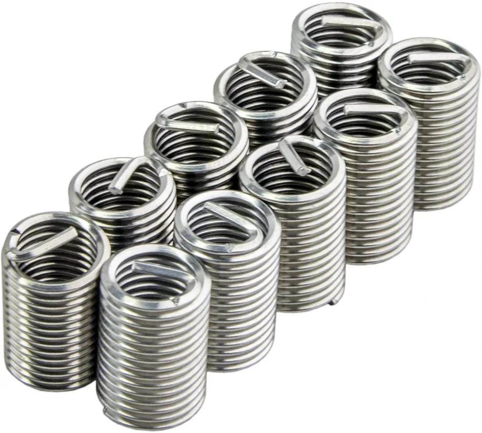 - Вставки имеют форму пружинки или спирали, что позволяет легко вкручивать их в поврежденную резьбу.