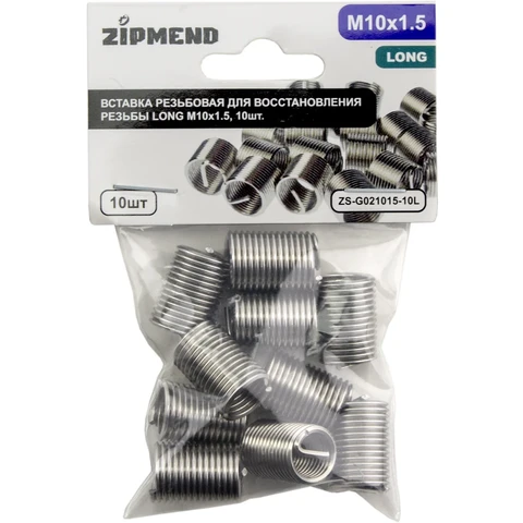 Вставка резьбовая для восстановления резьбы LONG M10 х 1.5, 10 штук, ZIPMEND, ZS-G021015-10L.