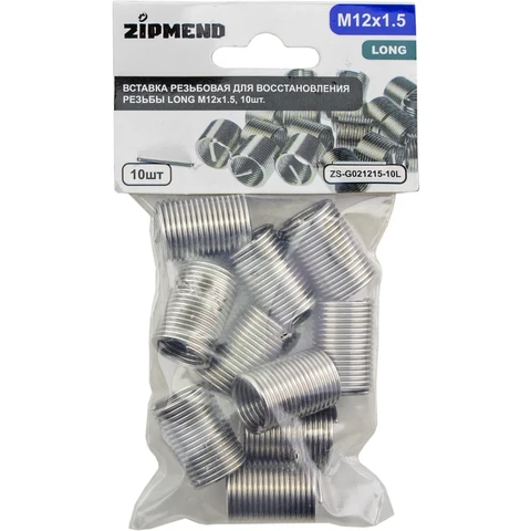 Вставка резьбовая для восстановления резьбы LONG M12 х 1.5, 10 штук, ZIPMEND, ZS-G021215-10L.
