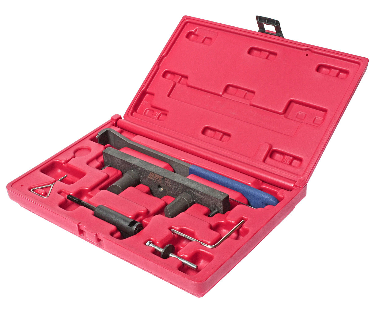 • JTC-4847 - Набор фиксаторов распредвала с приспособлением для натяжения ремня ГРМ (VW AUDI 2.0 FSI) JTC - Комплектация Фиксатор ролика натяжителя ремня. Оригинальный номер: T40011. Фиксатор ролика натяжителя ремня. Оригинальный номер: T10060, T10060A. Штифт для фиксации натяжителя ремня ГРМ. Оригинальный номер: T10115. Фиксатор натяжителя цепи ГРМ. Оригинальный номер: 3366. Приспособление для регулировки натяжного ролика ремня ГРМ. Оригинальный номер: T10020. Фиксатор распредвалов. Оригинальный номер: T10252. Приспособление для ослабления механизма натяжения ремня. Оригинальный номер: T10092. Описание Используется для бензиновых двигателей 2.0 FSI начиная с 2003 г.в. Применение Audi А3 2.0 FSI и FSI SOHC, модификации двигателей: AWA, BHD, BMB. Volkswagen Golf 2.0 FSI и FSI SOHC, Touran 2.0 FSI SOHC модификации двигателей: AWA, AXW.